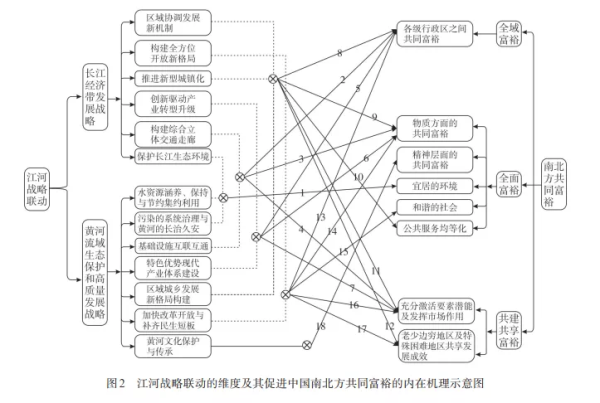 2021年5月20日,《中共中央国务院关于支持浙江高质量发展建设共同富裕示范区的意见》发布,标志着国家开始以打造共同富裕省域样本,作为展示中国特色社会主义制度优越性的重要手段。2021年8月17日,中央财经委员会第十次会议强调,在高质量发展中促进共同富裕,增强区域发展的平衡性。共同富裕作为社会主义的本质,在区域尺度上的传统界定更侧重于东中西部之间的均衡和协调发展。然而,目前中国南北方尺度上的区域差距相比东中西差距而言更为明显,中国区域尺度上的共同富裕在南北方省份之间显得更具必要性和紧迫性。 长江经济带发展、黄河流域生态保护和高质量发展、京津冀协同发展与粤港澳大湾区建设,作为新时代中国区域发展的重大战略,在新发展理念、新发展阶段和新发展格局背景下对地区发展起着提纲挈领的重要作用。长江经济带发展战略、黄河流域生态保护和高质量发展作为流域类的重大区域战略,其战略覆盖地区2020年占中国国土面积约为53.33%,其地级行政区个数和总人口数占中国的比重约为64.68%和66.84%,其GDP占比也达到了 66.62%,这两大战略的高效联动(以下简称“江”“河”联动)对于中国南北方省份缩减发展差距实现地区尺度上的共同富裕意义重大。 然而,从理论界对长江经济带发展战略、黄河流域生态保护和高质量发展战略的科学研究,以及中国南北方省份在推进两大战略的实践来看,均存在对两大战略实施的人为割裂。有鉴于此,从理论上探讨“江”“河”战略联动的维度,并将之匹配到中国南北方共同富裕的评价尺度上,进而探讨以“江”“河”战略联动促进中国南北方共同富裕的内在机理及路径问题,将十分必要。本文的主旨在厘清中国南北方共同富裕的衍生逻辑、发展维度及评价尺度的基础上,全面解析中国南北方共同富裕的科学内涵;在剖析“江”“河”战略理论研究孤立性和现实推动人为割裂的基础上解析“江”“河”国家战略联动的必要性;同时,在精准把脉“江”“河”国家战略联动的科学维度基础上,找准以“江”“河”国家战略联动推动中国南北方实现共同富裕的内在逻辑机理和科学发展路径。 一、中国南北方共同富裕的衍生逻辑、发展维度及评价尺度 共同富裕作为一种思潮,源自 《礼记·礼运》 所倡导的“天下为公”,这种古典的、朴素的思潮经过康有为“大同理想”和孙中山“三民主义”等理念的发展和融汇,逐步具备了深刻的时代内涵,成为了国家发展和社会治理的重要思想。“共同富裕”一词最初出现于《关于发展农业生产合作社的决议》(1953年12月16日),在此前后,“共同富裕”的实践探索经历了解放战争时期的打土豪分田地、计划经济时代的大锅饭和铁饭碗、改革开放初期的先富带动后富、2012年后提出的共享发展成果等发展阶段。共同富裕作为社会主义的本质要求,是经过中国共产党及新中国数代领导人的不懈探索而逐步形成的。其中,毛泽东强调“建设共同富裕的社会主义强国”,邓小平倡导“先富论”与“共富论”相结合的发展阶段论,江泽民在“三个代表”重要思想中指出要兼顾效率和公平,胡锦涛指出在科学发展中必须以人为本,习近平则强调全面建设小康社会。 一般而言,共同富裕必须建立在正义的秩序、经济增长与充分就业、科学的收入分配基础上,这三者分别构成了共同富裕的制度基础、经济基础和工具基础。实现共同富裕必须在正义秩序条件下,在经济增长与充分就业的保障下,实现国民收入在不同区域之间、城乡之间、行业之间和不同人群之间的科学分配,让不同区域、城市和农村、不同行业以及不同人群均能实现全面发展和进步,并能共享发展成效。这就意味着共同富裕一般会具有区域之间、城乡之间、行业之间和人群之间等尺度要求。共同富裕作为马克思主义价值观的重要基石,侧重于消灭剥削制度,倡导在社会主义发展过程中要做到“做蛋糕”与“切蛋糕”的统一,要做到“终极性价值”和“过程性价值”、“物质利益价值”和“精神需求价值”、“主导性价值”和“共同性价值”的有机统一。由此,在共同富裕的制度设计中,既要看到共同富裕实现的长远性,也要注意共同富裕实现的现实性和过程性;既要摒弃同等富裕和同步富裕,也要摒弃两极分化与长期贫困;既要强调通过区域协同发展、城乡统筹发展、行业协调发展和收入分配调节等手段实现区域、城乡、行业和人群的共同富裕,也要强调通过精准扶贫攻坚来消除绝对贫困。 将共同富裕限定到中国南北方区域协调发展上,就形成了中国南北方共同富裕问题,这是从中国南方和北方区域板块的尺度来探讨共同富裕问题。从狭义上看,中国南北方共同富裕仅指在中国南北方不同地区不同省份之间实现共同富裕;而从广义上看,这种共同富裕又包括了中国南方、北方区域板块内部城乡之间、不同行业之间、不同人群之间实现共同富裕。限于篇幅,本文拟仅从狭义的视角入手探讨。中国南北方共同富裕需要重点解决三个问题,第一,中国南北方要否实现共同富裕?第二,中国南北方中哪些省份之间、哪些地区之间需要实现共同富裕?第三,中国南北方共同富裕需要实现到何种程度?这三个问题,从本质上来说,是要从衍生逻辑、发展维度和评价尺度等方面来解析中国南北方共同富裕的理论问题。 中国南北