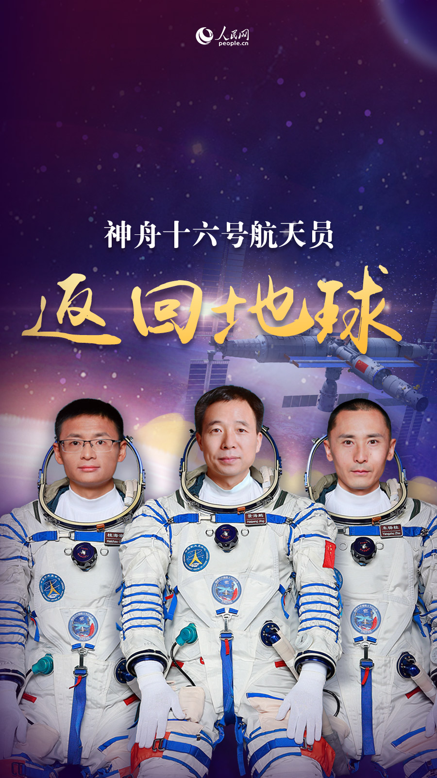 7时21分,北京航天飞行控制中心通过地面测控站发出返回指令,神舟十六号载人飞船轨道舱与返回舱成功分离。之后,飞船返回制动发动机点火,返回舱与推进舱分离,返回舱成功着陆,担负搜救回收任务的搜救分队及时发现目标并抵达着陆现场。