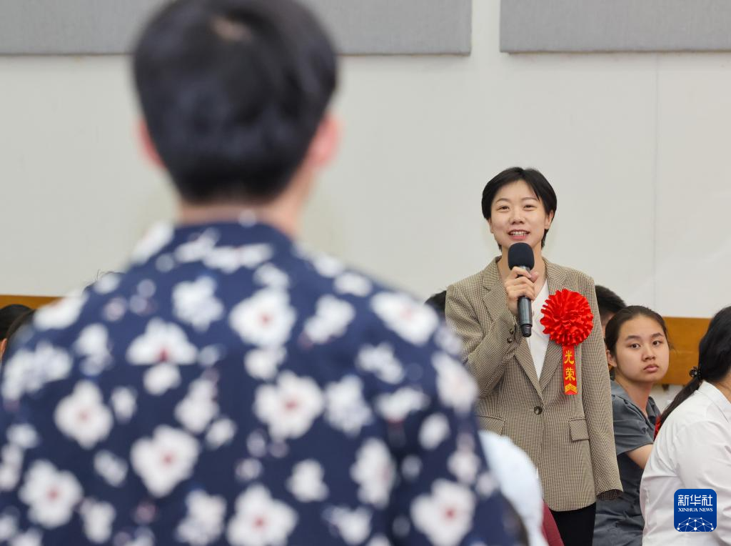5月18日,江苏省东台市特殊教育学校高级教师李康在现场进行宣讲。新华社记者殷刚摄