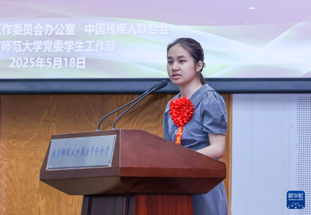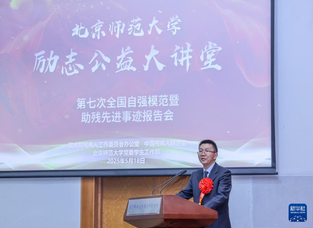 5月18日在北京师范大学拍摄的第七次全国自强模范暨助残先进事迹报告会现场。新华社记者殷刚摄