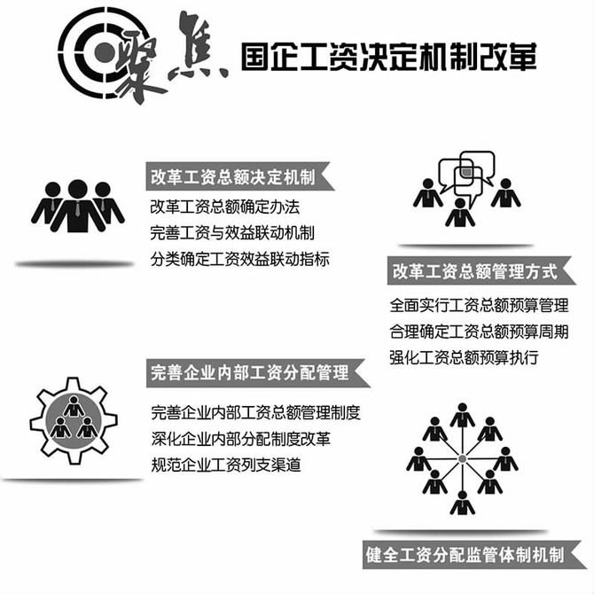 三是做好《意见》实施的配套改革政策制定,并创造实施的良好环境和条件。其中包括完善工资指导线制度,提高工资指导线发布的时效性、科学性;建立统一规范的企业薪酬调查和信息发布制度,以及加强对国内外不同行业企业,尤其是行业龙头企业经营情况、技术水平、不同层级管理和技术人员薪酬水平等的研究,为企业市场对标、行业对标找准标杆,对好标尺,积极推进《意见》提出的各项政策落实落地。(中国劳动和社会保障科学研究院副院长 谭中和)(图表内容来源:国务院《关于改革国有企业工资决定机制的意见》 漫画图表 小米/绘)