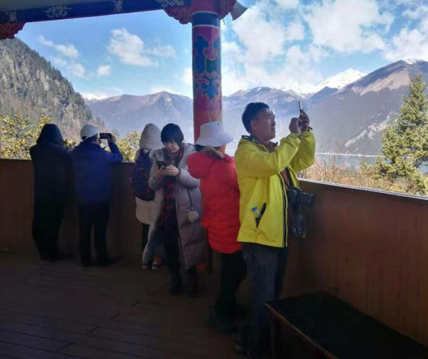 图为游客在观景台拍照。记者 龙会琴 摄