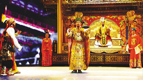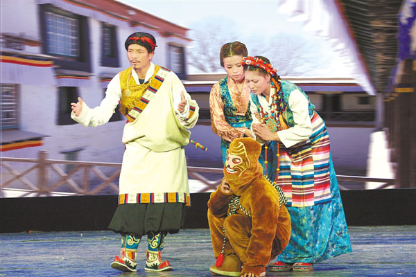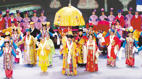 图为城关区娘热乡民间艺术团在表演藏戏《文成公主》。