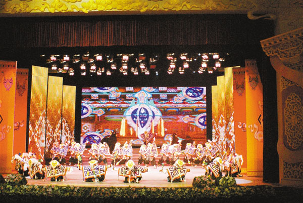 在众多的民间艺术团队中,城关区娘热乡民间艺术团所表演的藏戏最为正宗,该团是100多个民间剧团中唯一一个能够完整表演“八大藏戏”的团体。该艺术团还制作了“八大藏戏”舞台剧和传统剧的光碟,让广大喜爱藏戏的观众实现了足不出户就可在家观看整套“八大藏戏”的愿望。“八大藏戏”舞台剧和传统剧两套光碟适合各年龄阶段人群观看,对于听不懂传统藏戏的年轻人,可选择观看“八大藏戏”的舞台剧,舞台剧光碟在荧幕下方配有中文、藏文和英语三种字幕。在这些辉煌成绩的背后,是三代人为了藏戏传承默默地付出。50岁的米玛是城关区娘热乡民间艺术团的团长,他们一家三代人将传承藏戏作为家族使命,在多位老传承人的帮助下,娘热乡民间艺术团共培养出了11位传承人。“我热爱藏戏,所以我继承了父亲的事业。现在,我儿子也辞去了单位的工作,目前在艺术团跟班学习。我们一家人的共同愿望就是将藏戏更好地传承和发扬下去。目前,拉萨南边的慈觉林大型实景剧《文成公主》深受广大群众和游客的喜爱,我的下一个愿望就是将拉萨北部城关区娘热乡民间艺术团打造成‘藏戏基地’,努力将传统民族文化发扬光大。”城关区娘热乡民间艺术团团长米玛满怀信心地说。