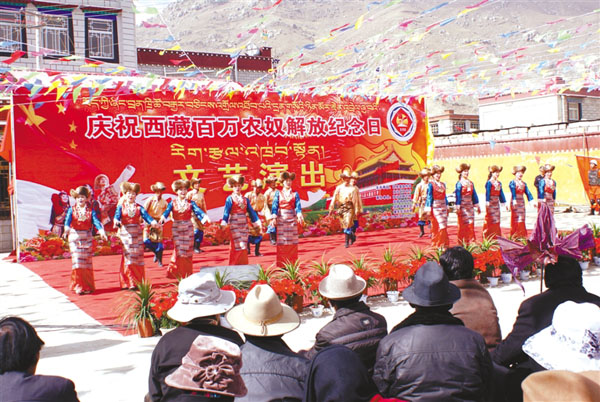 图为城关区娘热乡民间艺术团参加文艺演出。