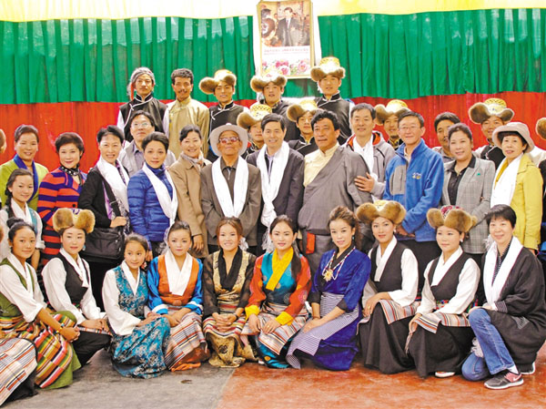 数十年艰辛发展,数十年薪火相传。2000年,格龙把多年来艺术团演出赚来的钱和自己家中所有的存款共计40余万元全部投入到艺术团,在艺术团原址上新盖了两层楼房,开设了10间门面房、12间出租房和5间房的招待所。艺术团终于有了宽敞明亮的排练厅、办公室和厨房,米玛还购置了扬琴、六弦琴、小号、鼓、笛子等乐器,艺术团演员由过去的18人发展到了现在的53人(艺术团自成立起至今已解决了170多人的就业),固定资产从刚开始的“零”达到现在的5000万元,演员年平均收入已达到6万元。“小时候,父亲一个人的工资不仅要养活我们一家老小,还要用于18名藏戏演员的费用,家里的经济十分拮据。为了减轻父亲的压力,初中毕业后,我便开始为了生计而奔波,我什么活都干过,在工地上跑过运输,也骑着自行车卖过牛奶、酸奶和土豆。父亲去世前,我便开始帮着父亲管理团里的各项事务,父亲离世后,我接管了艺术团。一直以来,我和父亲都把传承民族文化放在首位,为了更好地保护非物质文化遗产,我们一直在不懈努力,对节目的要求也是精益求精。我们积极与自治区群艺馆、自治区歌舞团、自治区藏剧团等专业艺术团体沟通联系,聘请指导老师到艺术团进行专业指导,根据实际情况将艺术团演员送到专业机构进行专业知识培训,从最基础的一招一式和吐字说唱进行纠正、指导,演员们的演技得到了很大程度的提高。现在,我们艺术团已成为全区唯一一个能表演‘八大藏戏’的团队,还能根据需要表演‘堆谐’‘朗玛’‘羌姆’以及民族歌舞等。我们以农村发生的巨变和存在的陈规陋习、封建迷信等现象为题材,编排了一些短小精悍的小品,歌颂党的富民政策,鞭挞愚昧落后,倡导科学文明,破除封建迷信,让农牧民群众在欢乐中受到了教育、得到了启迪、开阔了眼界、增长了知识。”米玛满意地向记者介绍道。