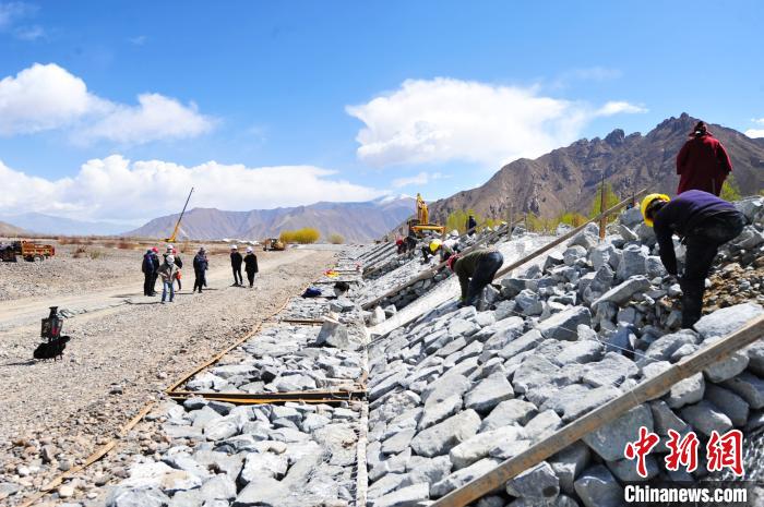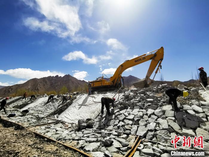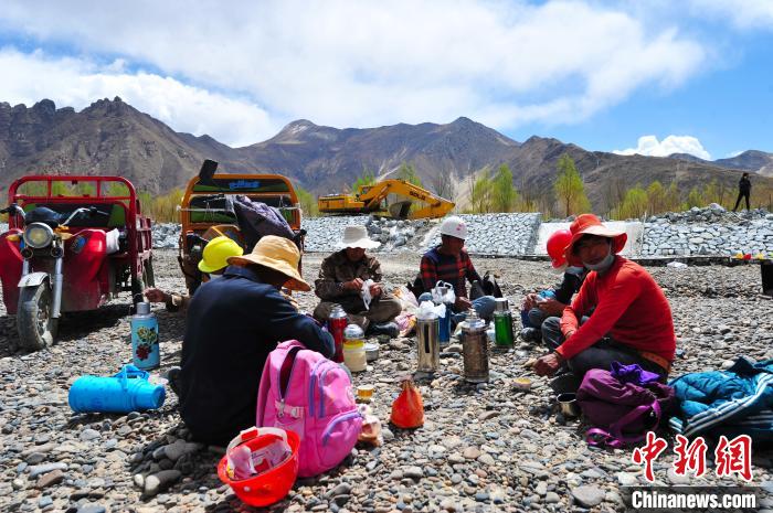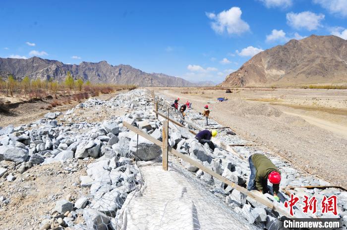图为4月10日,曲水县当地农牧民在雅江(拉萨河段)治理工程才纳乡协荣段施工。 张伟 摄